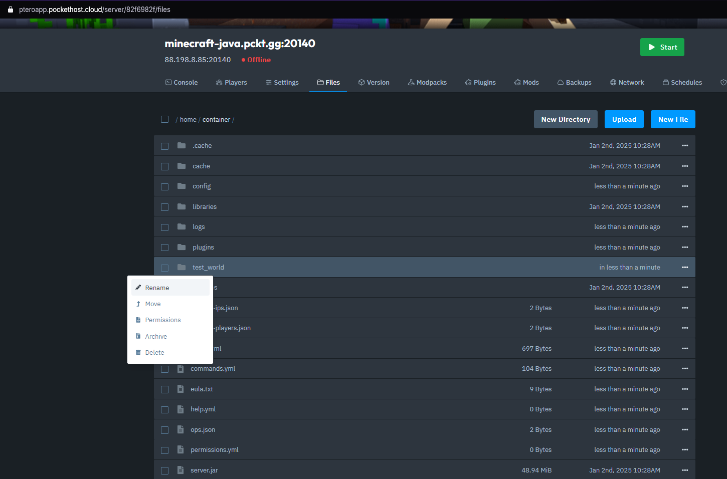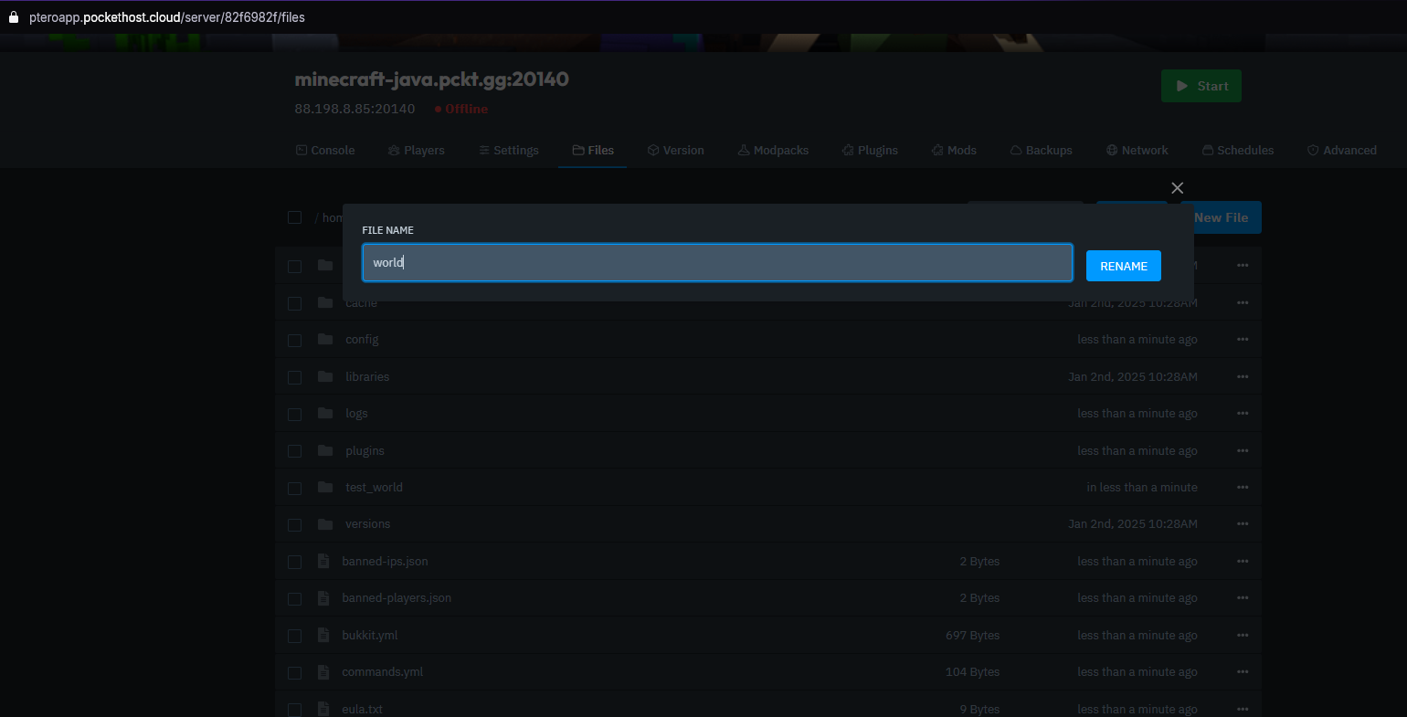 Once everything is set up, start your server. If you're uploading a Vanilla world to a Paper server, the server will automatically generate world_nether and world_the_end folders based on your uploaded world folder.