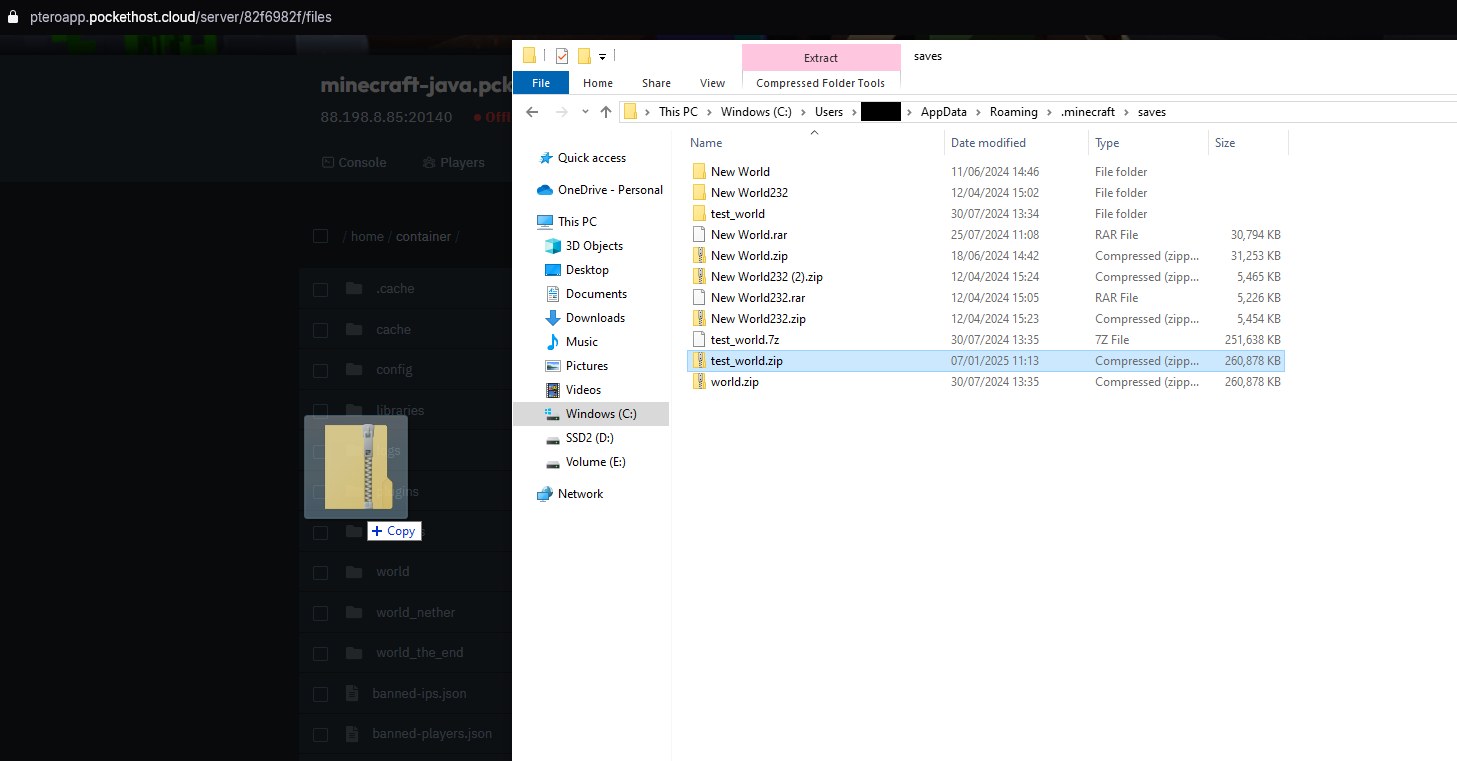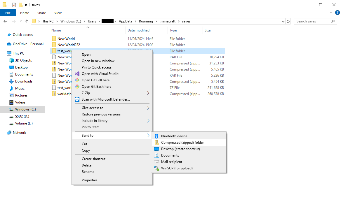Right-click on the world folder you want to upload and select Compress to ZIP file (or a similar option depending on your operating system). Ensure that the entire world folder is included in the .zip file.