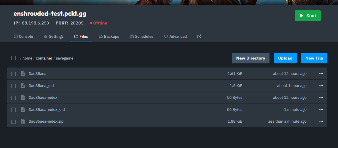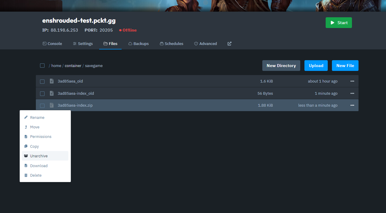 After uploading, unarchive the .zip file in the server’s savegame folder.