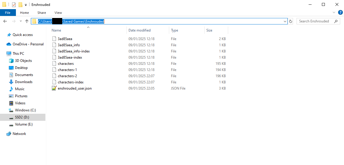 C:\Users\%username%\Saved Games\EnshroudedIf Cloud Save is active, your save file will be in your Steam install directory at the following path: