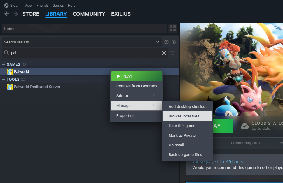Right-click on Palworld in your game library.