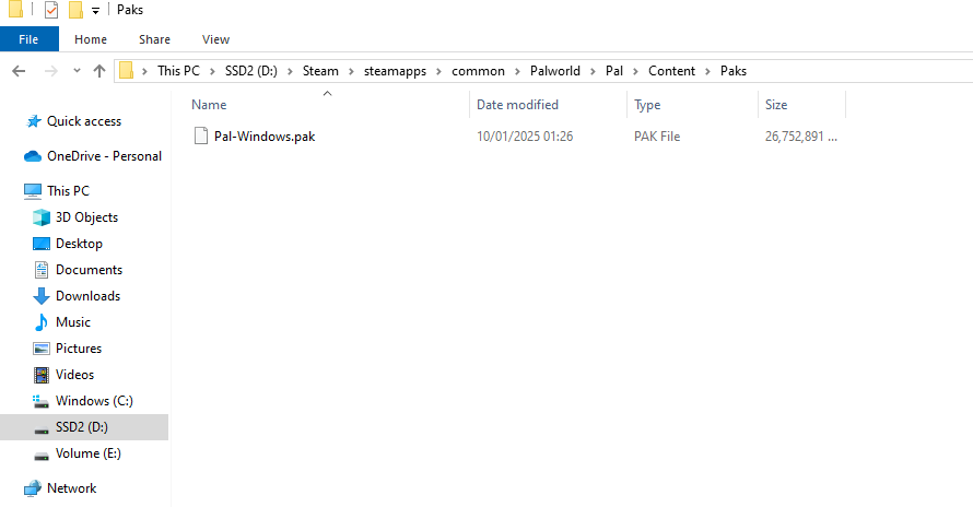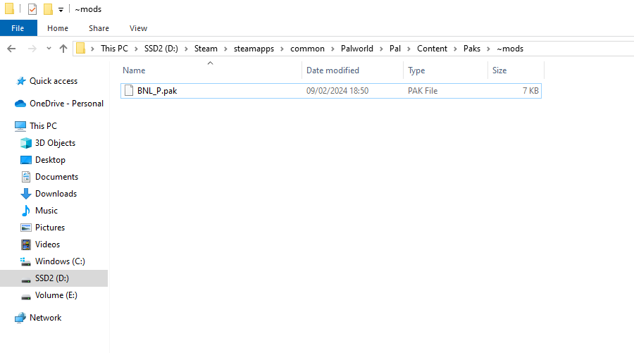 /Pal/Content/PaksIn the Paks directory, create a new folder called: