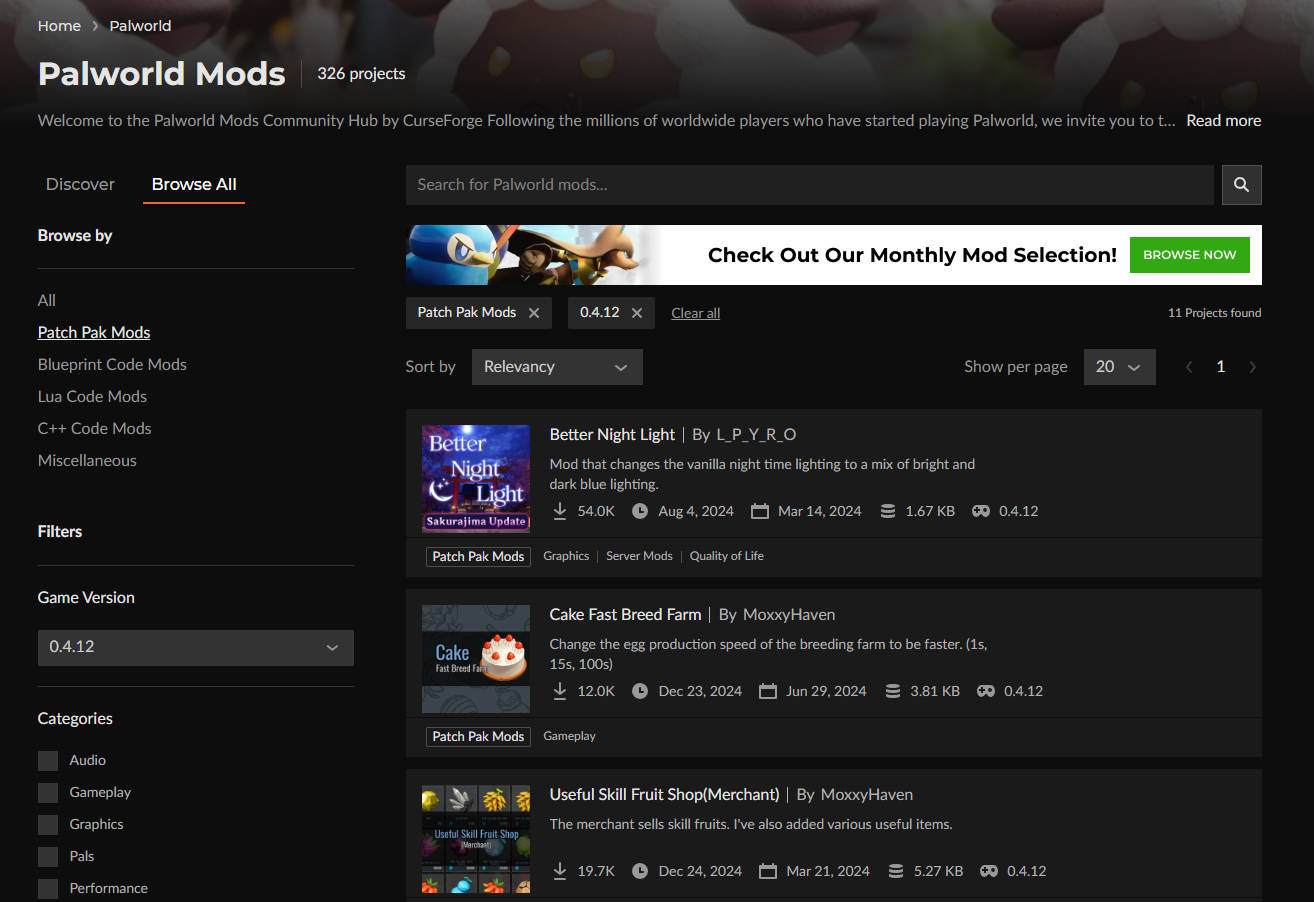 Find a Pak Mod that works with the current version of Palworld.