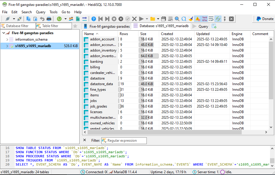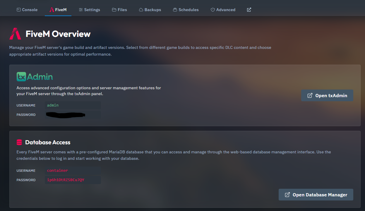 Connect to your database using the credentials found in the 'FiveM' tab.