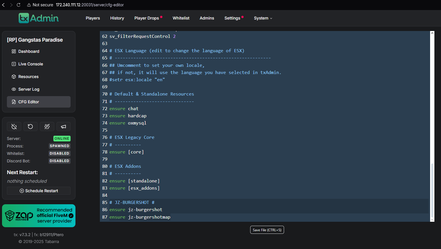 Or, you can use the CFG Editor in your txAdmin panel for a more streamlined approach.