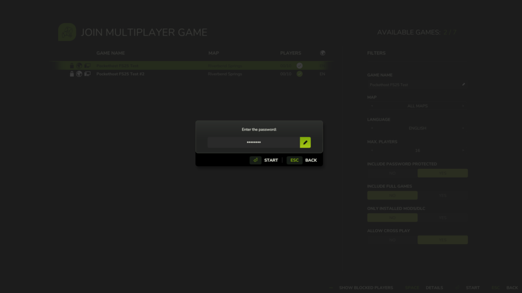 7. Connect to Your Server: Click on your server from the list, press Enter, and enter your Game Password when prompted.