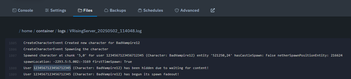 Procure pelo nome do jogador no log. Você vai ver algo assim:
